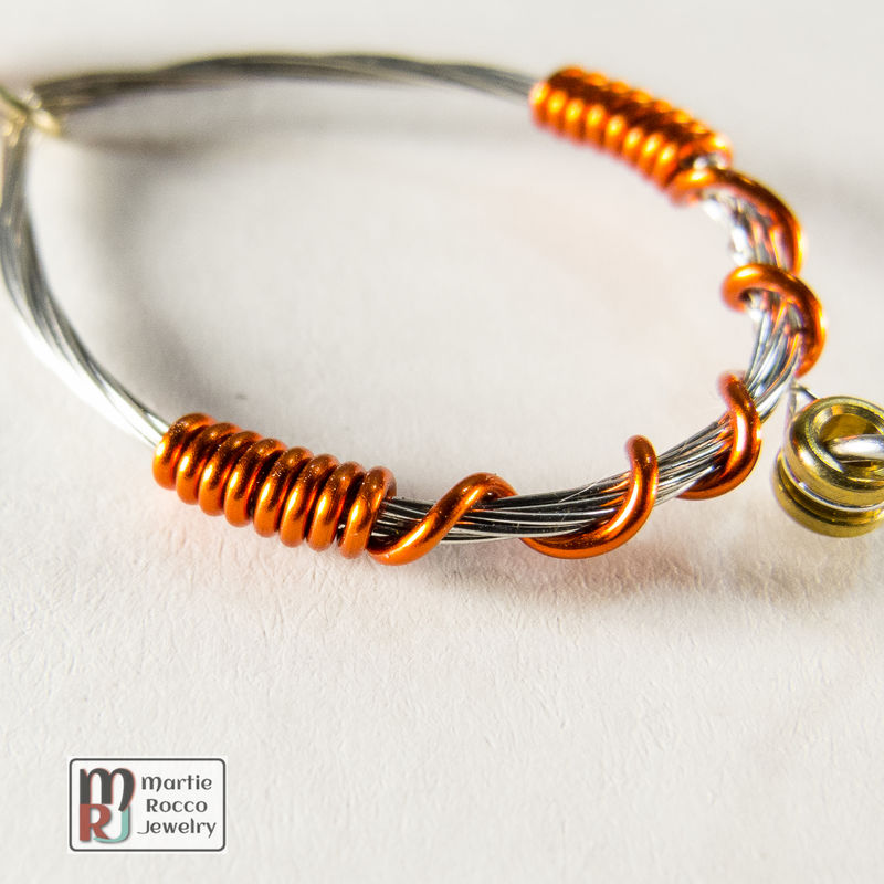 Guitar String hoop earrings orange wire wrap and glass bead listed in: