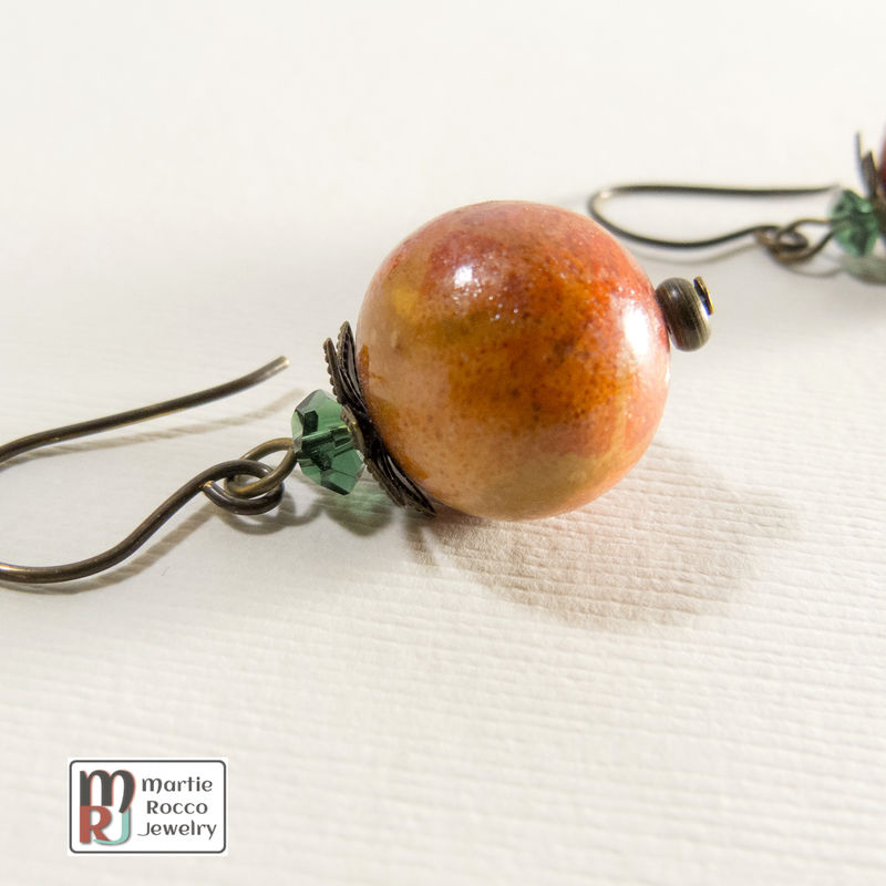Wooden apple look earrings antiqued brass wire listed in: